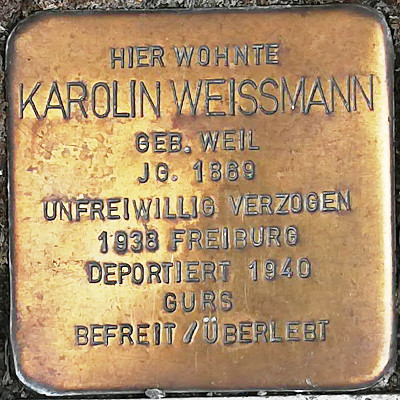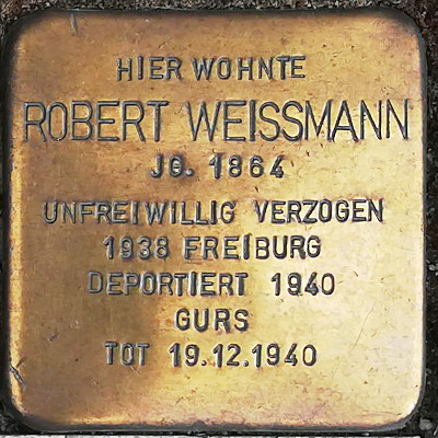Am 22. Oktober 1940 erfolgte die Deportation der Freiburger Juden in das Lager Gurs (Südfrankreich). Robert verstarb dort am Jahresende, Karolin konnte später nach Israel gelangen.
