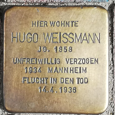 1936, er wollte oder konnte nicht auswandern, nahm sich Hugo mit 74 Jahren in Mannheim das Leben.