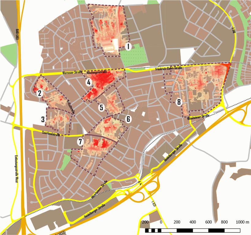 Die Lage, Tiefe und Ausdehnung solcher Muldenbereiche machen die Karten sichtbar, die hier zum Download bereitgestellt sind. Sie enthalten 20 cm Höhenlinien für das Stadtgebiet und eine farbige Gefahrenkennzeichnung für 8 Teilbereiche, in denen gefährdete Tieflagen verbreitet vorkommen. Nicht nur, aber gerade in diesen Bereichen sollten sich Anwohner und Eigentümer mit den Gefahren auseinandersetzen.