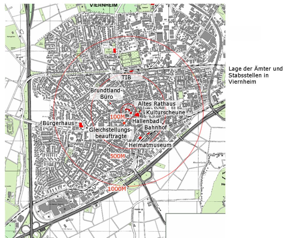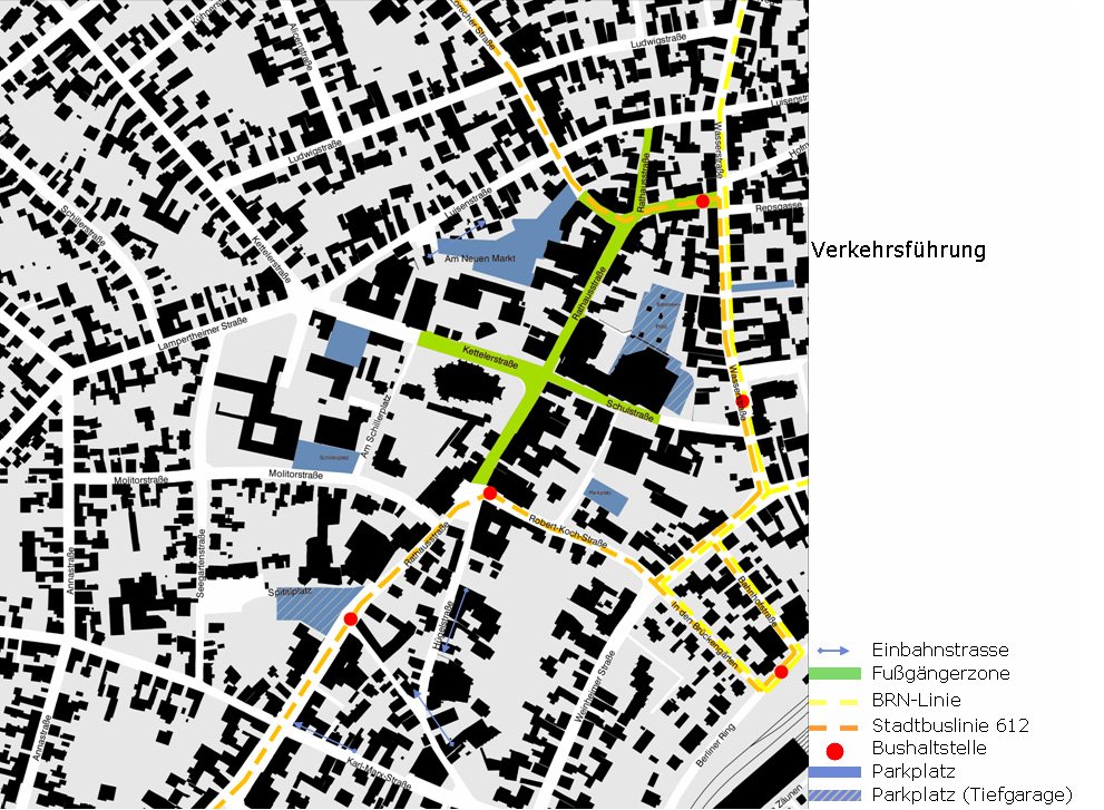 - Die Anbindung an die Stadt erfolgt derzeit ausschließlich über die Südseite