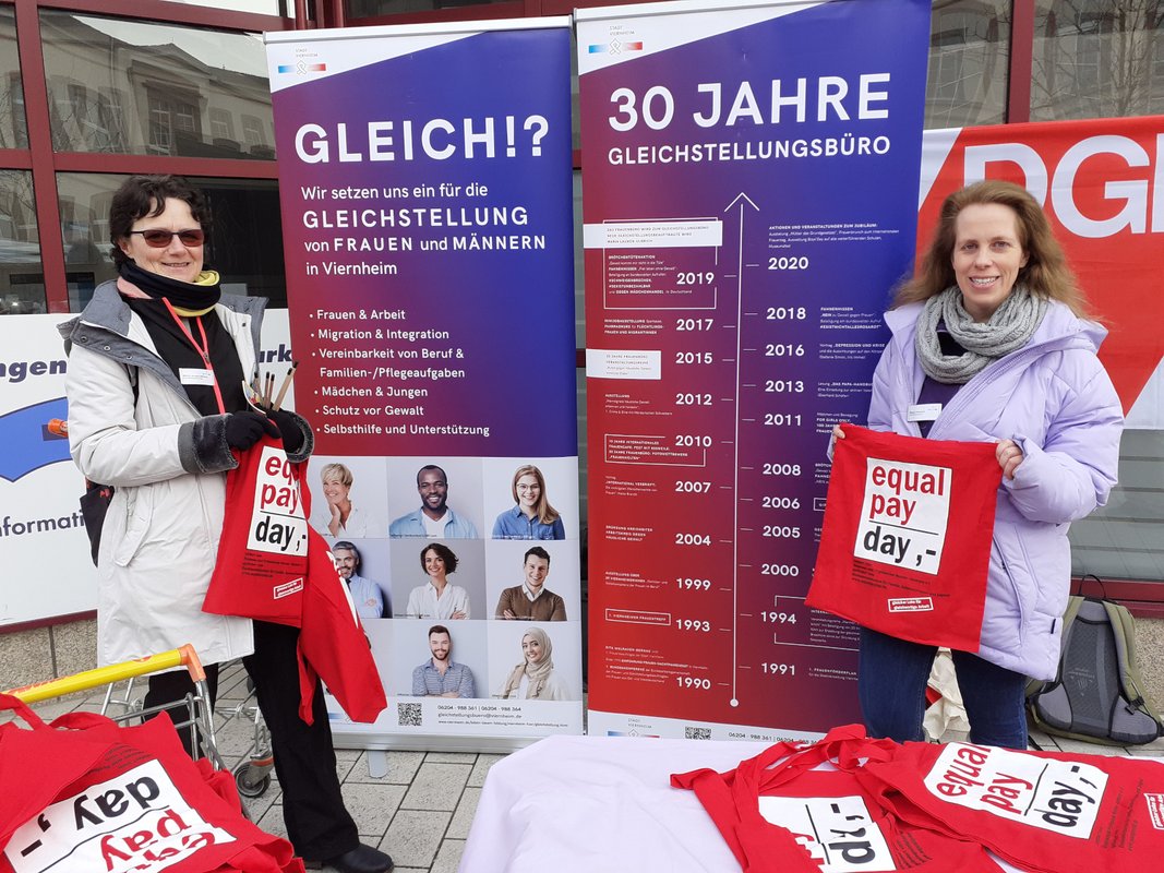 Am Donnerstag, 26.2.26 steht das Gleichstelungsbüro Viernheim mit einem Infostand zum Equal Pay Day von 8-11 Uhr auf dem Spezialitätenmarkt, Apostelplatz, um über (un)gleiche Bezahlung der Geschlechter zu informieren. Der DGB-Ortsverband Viernheim unterstützt die Aktion. Am gleichen Tag wird um 12 Uhr gemeinsam mit dem Bürgermeister Matthias Baaß und der Gleichstellungsbeauftragten Maria Lauxen-Ulbrich die Fahne zum Weltfrauentag vor dem Alten Rathaus gehisst. Alle sind herzlich willkommen! Keine Anmeldung erforderlich!