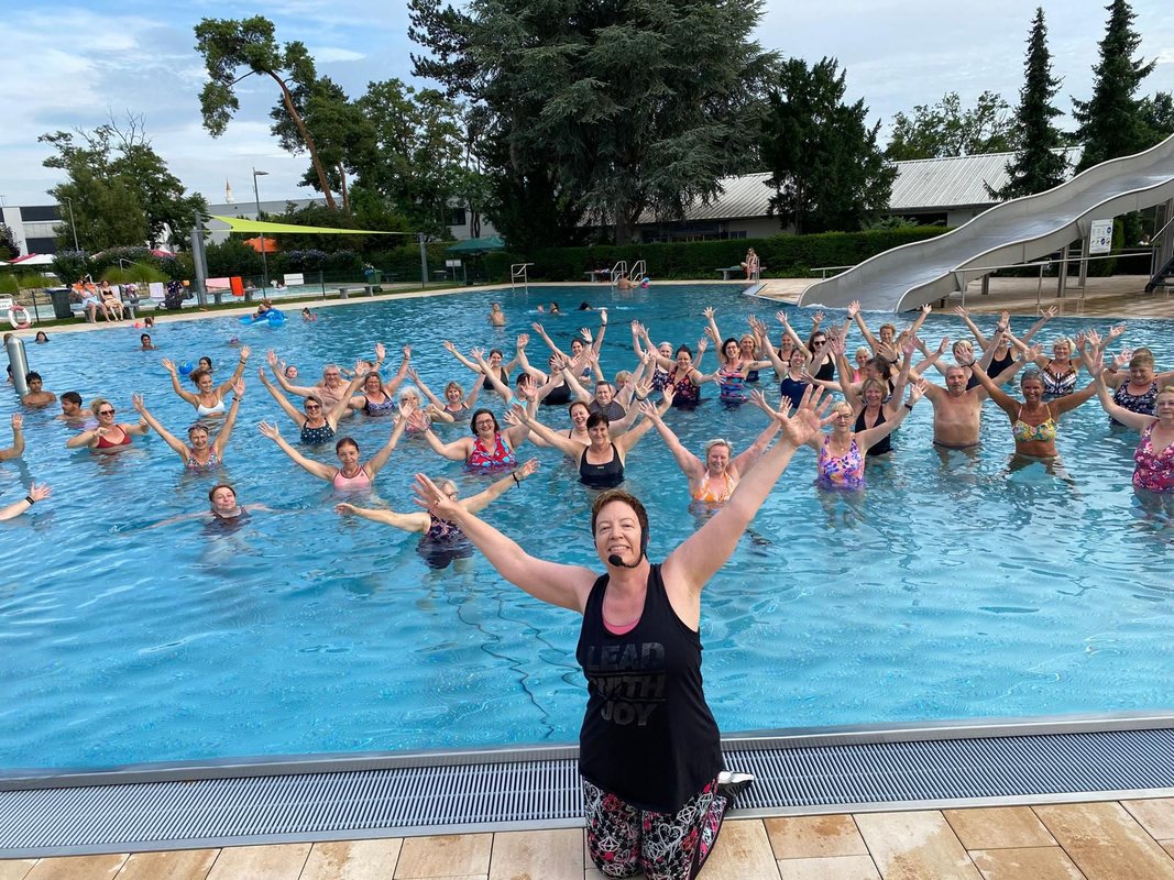 Aqua Zumba® wird von der Volkshochschule Viernheim angeboten, die über ein vielseitiges Gesundheitsprogramm verfügt. Das Angebot wird geleitet von Kerstin Fleck.