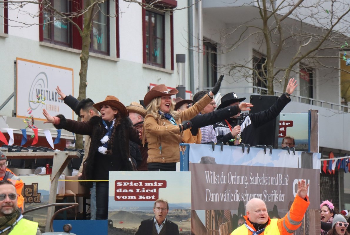 Entlang der Zugstrecke sorgten fröhliche Gruppen und viele verteilte „Gutsel“ für ausgelassene Stimmung, besonders bei den jüngsten Besucherinnen und Besuchern. Auch der Apostelplatz war wieder ein zentraler Treffpunkt: Die After-Umzugsparty begann bereits am frühen Nachmittag und wurde auch nach Ende des Umzugs bis in die Abendstunden hinein ausgelassen gefeiert. Für das leibliche Wohl sorgten Viernheimer Vereine, während DJs und Moderation das Publikum unterhielten.