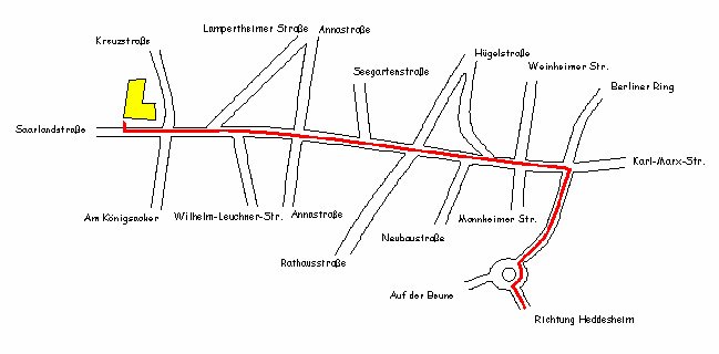 - Von der Heddesheimer Straße durch den Kreisel rechts auf den Berliner Ring einbiegen.
